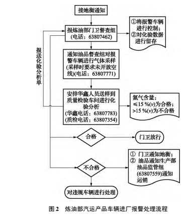 (3)管理手段控制。制定 《過(guò)衡十不準(zhǔn)》,約束司機(jī)行為。通過(guò)數(shù)據(jù)比對(duì),篩出受懷疑車號(hào),建立黑名單、灰名單。通告司機(jī)已被關(guān)注,警示司機(jī)不要再違規(guī)。與煉油部、烯烴部、化工部等作業(yè)部,以及銷售中心、物資裝備部等部門,共同理順計(jì)量流程和票據(jù)流轉(zhuǎn),將遞送給不同部門的計(jì)量磅單按不同顏色區(qū)分,同時(shí)和作業(yè)部門禁相互協(xié)作,規(guī)范行車路線,門禁見到已完成的計(jì)量單才可以放行車輛。維護(hù)好監(jiān)控探頭,消滅視頻死角,并在衡器周圍設(shè)立明顯的警示牌,告知此處在視頻監(jiān)控范圍內(nèi),警示司機(jī)不要有撬衡等違規(guī)行為。與作業(yè)部的門禁、保衛(wèi)、督查、儲(chǔ)運(yùn)等部門鼎力協(xié)作,建立聯(lián)動(dòng)機(jī)制,如圖 1 和圖 2 所示。