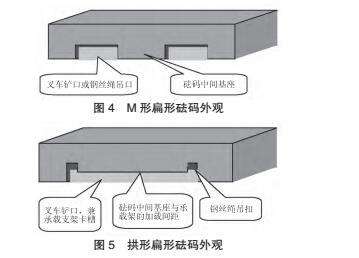 根據承載支架尺寸,兩種不同外觀的扁形砝碼分別為M形和拱形,其標準質量均為1 t,M形尺寸約為:長(1.0 m)x 寬(0.70 m)x 高(0.25 m); 拱形尺寸約為:長(1.0 m)x寬(0.70 m)x高 (0.27 m);占地面積均為0.70 m2 (圖4、圖5)。
